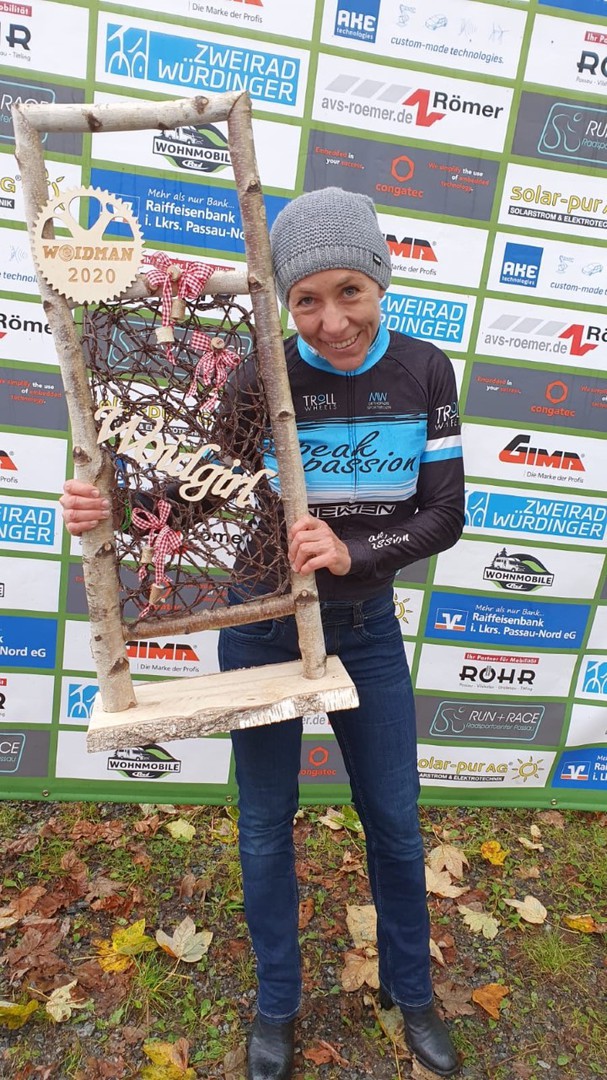 ...auf die vermeintlich Führende jüngeren Alters. Ehrfahrungsgemäß halten die noch recht jungen Damen ihr Tempo selten über mehrere Stunden aufrecht, sodass ein späteres Einholen zu erwarten war. Leider kommt die Dame aber nicht in Sicht, und als die Zurufe "erste Dame" immer lauter werden, tauchen bei Gloria Fragezeichen auf. Die Auflösung erfolgt im Ziel: das "Phantom" entpuppt sich als Mann mit etwas längeren blonden Haaren.....